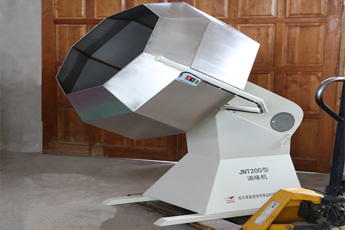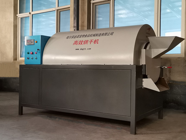 狗糧設備的輔助設備(烘干房的特點):JNR800 烘干機是狗糧生產線所用干燥設備,長10米,寬1.0米,高1.9米。原理是向烘房內吹入130度熱風,不銹鋼網帶上均勻分布著狗糧顆粒,網帶在變頻電機驅動下轉動。熱風透過狗糧顆粒和網帶后,蒸氣被烘房頂部的風機抽出,排放到車間外。